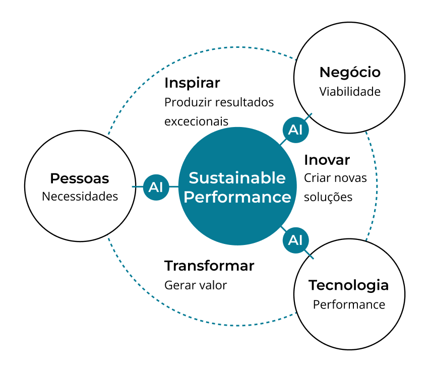 Ajudamos os nossos clientes a maximizar o seu desempenho através da transformação inovadora. Integramos negócio, tecnologia e pessoas, combinamos a criatividade e a ética humana com a inteligência artificial para acelerar a criação de valor.